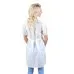 Халат женский укороченный прямого силуэта с центральной застежкой на молнию. Полочка с двумя нижними накладными карманами и разрезами по боковым швам. Рукав короткий, втачной. Двухслойные отложные полуворотники вшиты в плечевые швы. Объем талии регулируется двумя полупоясами, все детали изделия обработаны износостойким кантом. Халат предназначен для защиты от общепроизводственных загрязнений.