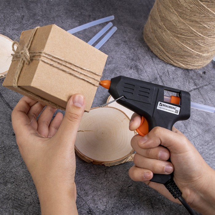 Клеевой пистолет BRAUBERG предназначен для прочной фиксации поверхностей с помощью расплавленной клеевой массы. Является одним из главных помощников в творчестве для изготовления разнообразных поделок, а также в быту для склеивания мелких деталей.