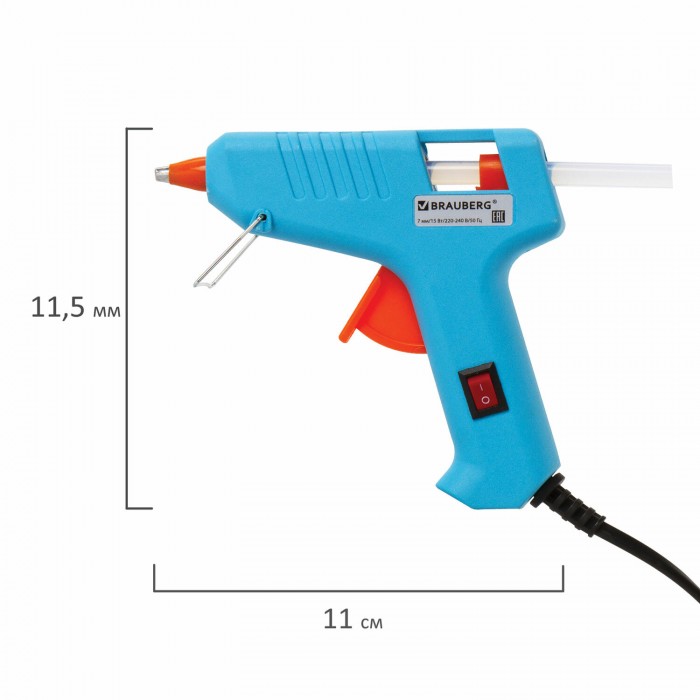 Клеевой пистолет BRAUBERG предназначен для прочной фиксации поверхностей с помощью расплавленной клеевой массы. Является одним из главных помощников в творчестве для изготовления разнообразных поделок, а также в быту для склеивания мелких деталей.