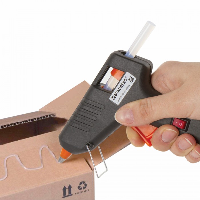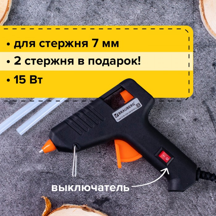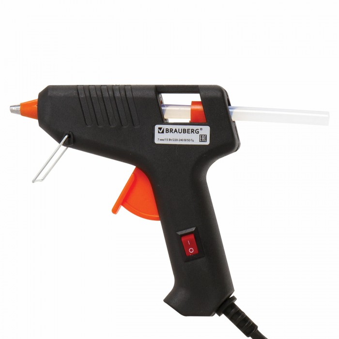 Клеевой пистолет 15 Вт для стержня 7 мм, с выключателем, BRAUBERG, в блистере, 671051