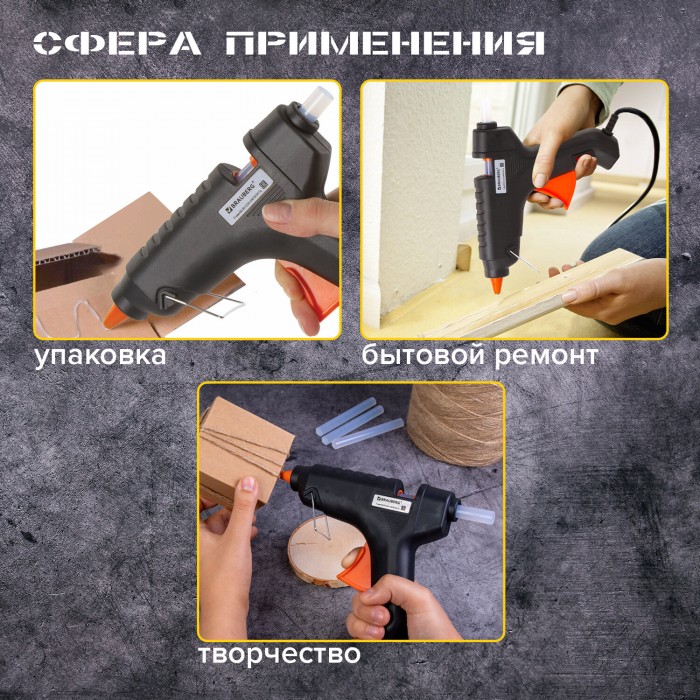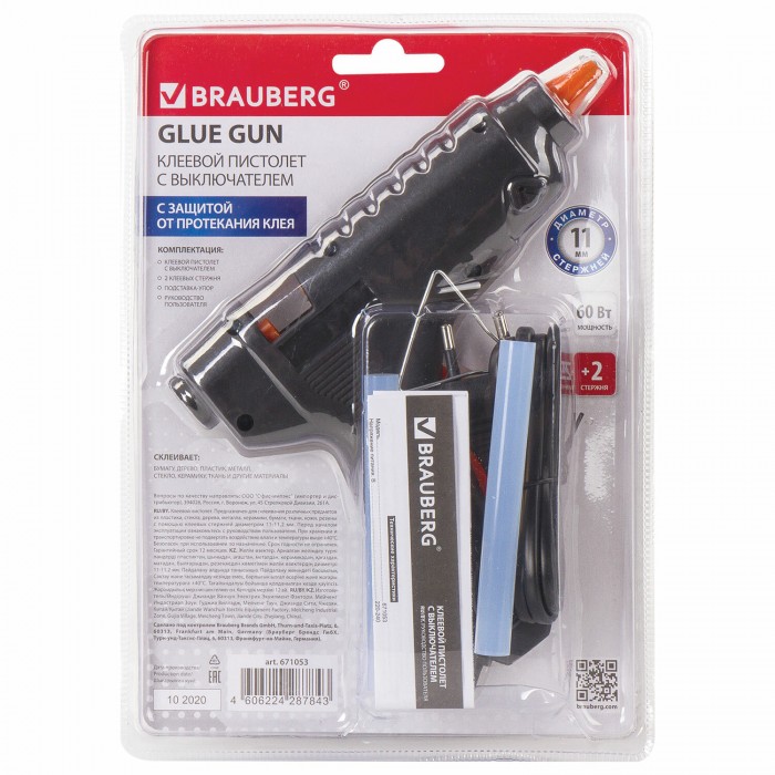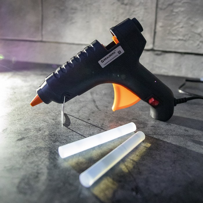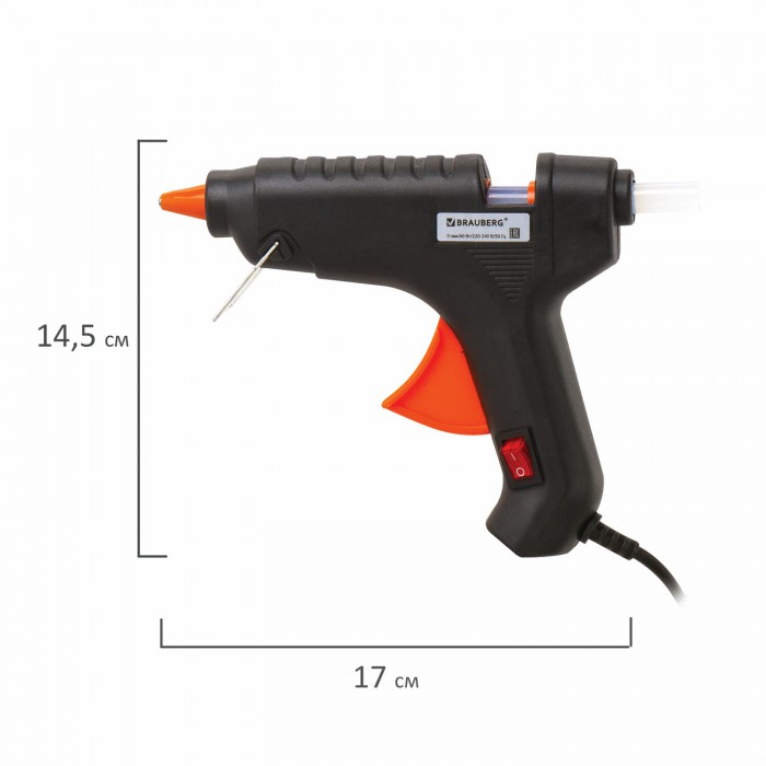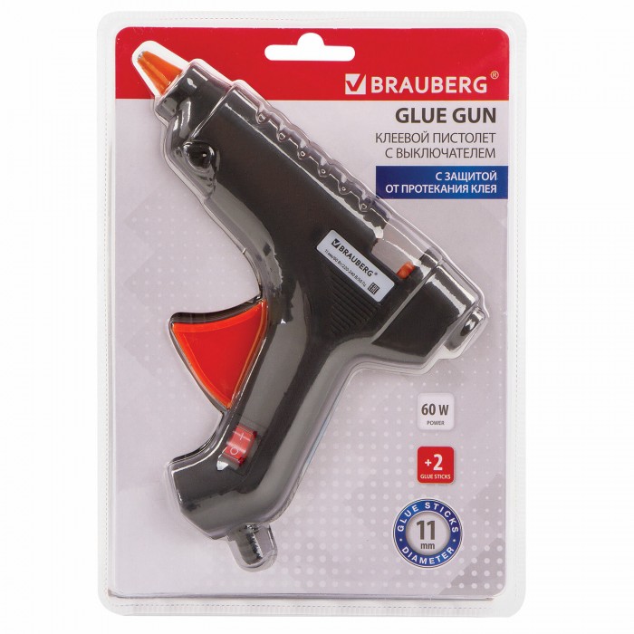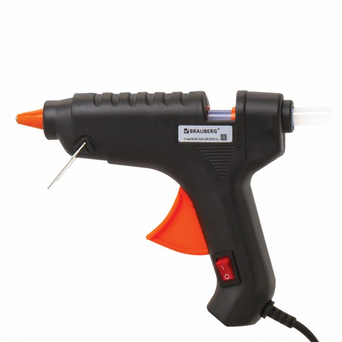 Клеевой пистолет 60 Вт для стержня 11 мм, с выключателем BRAUBERG, в блистере, 671053