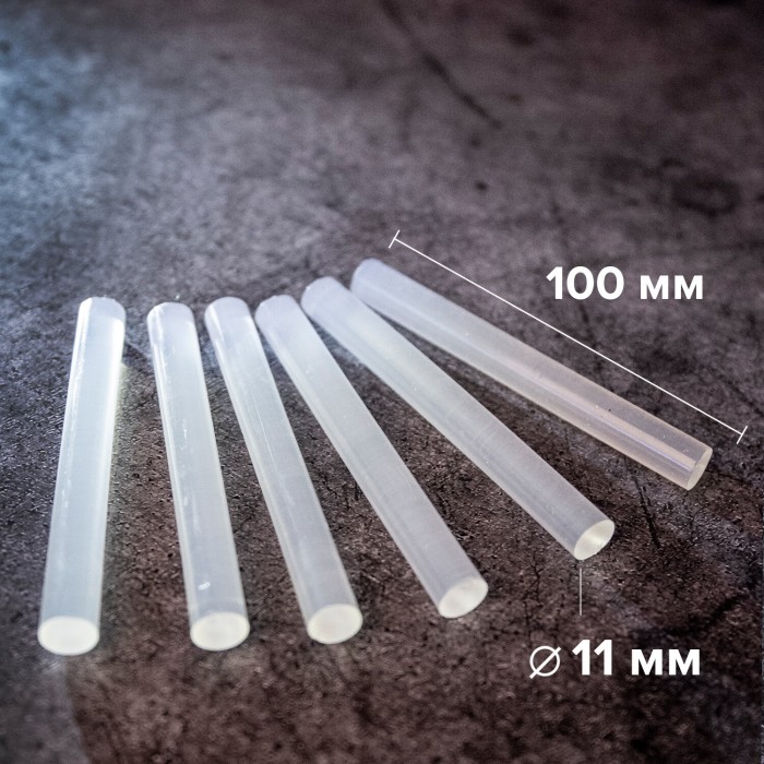 Клеевые стержни, диаметр 11 мм, длина 100 мм, прозрачные, комплект 6 шт., BRAUBERG, европодвес, 670293