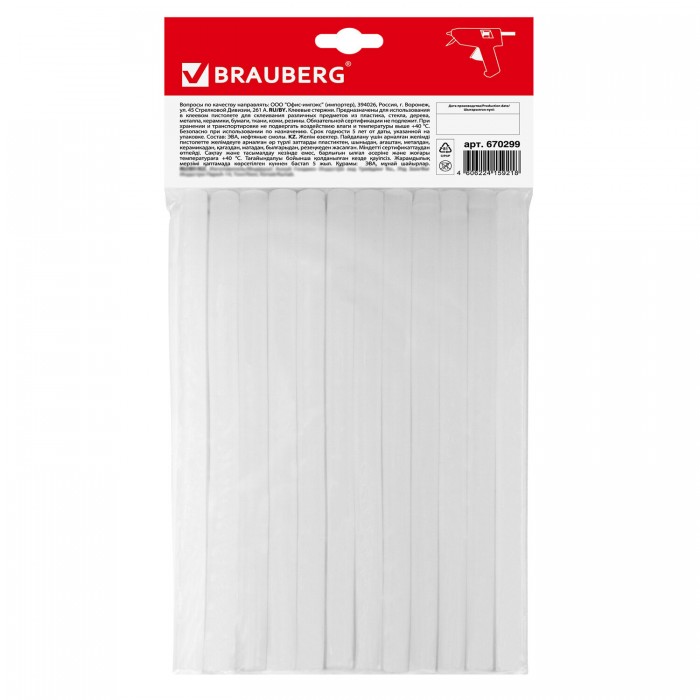 Клеевые стержни BRAUBERG используются при работе клеевых пистолетов.