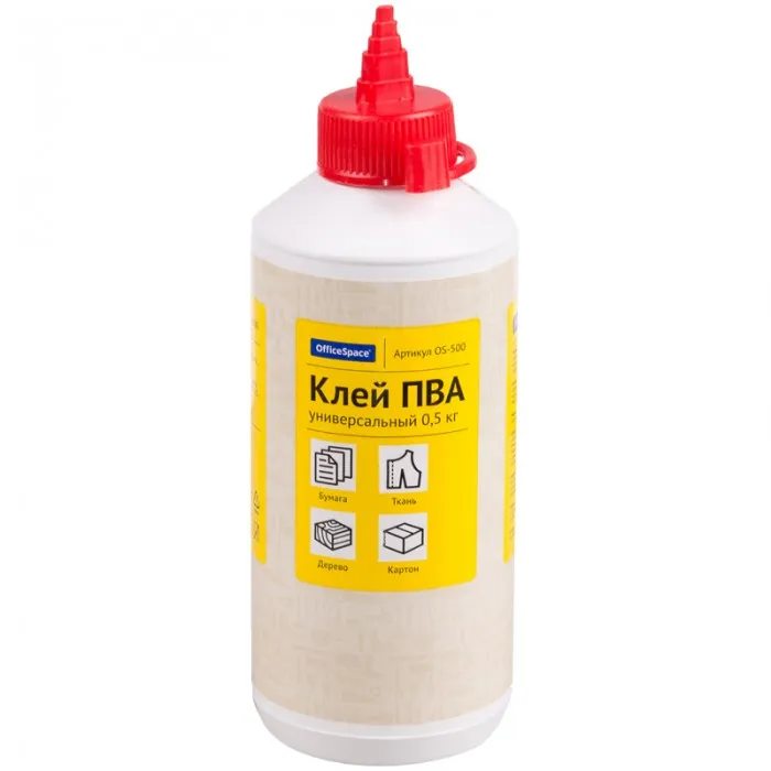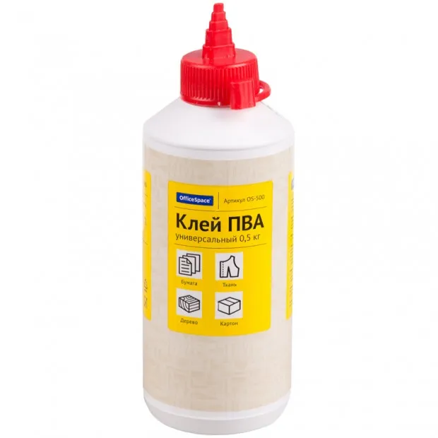 Клей ПВА OfficeSpace, универсальный, с дозатором, 0,5кг