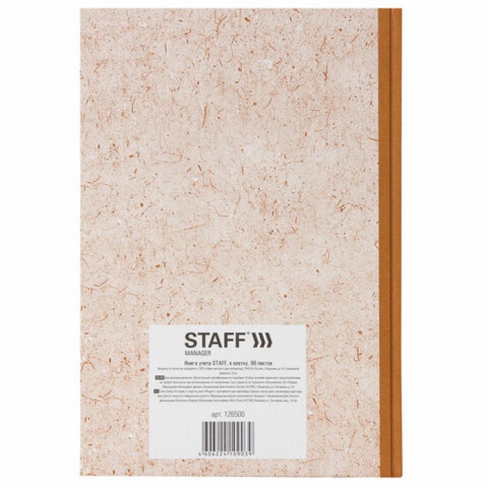 Книга учета 96 л., клетка, твердая, крафт, типографский блок, А4 (200х290 мм), STAFF, 126500