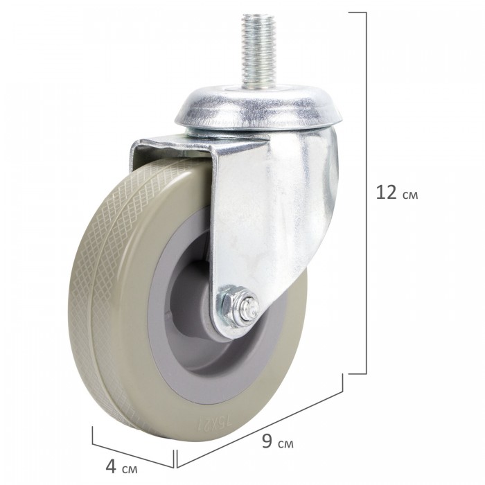 Колеса для уборочных тележек с штоком с резьбой, диаметр 75мм, КОМПЛЕКТ 4 штуки. Колеса подходят для многих уборочных тележек (идеально подходят для тележек BRABIX 601498, 601499, 601500).