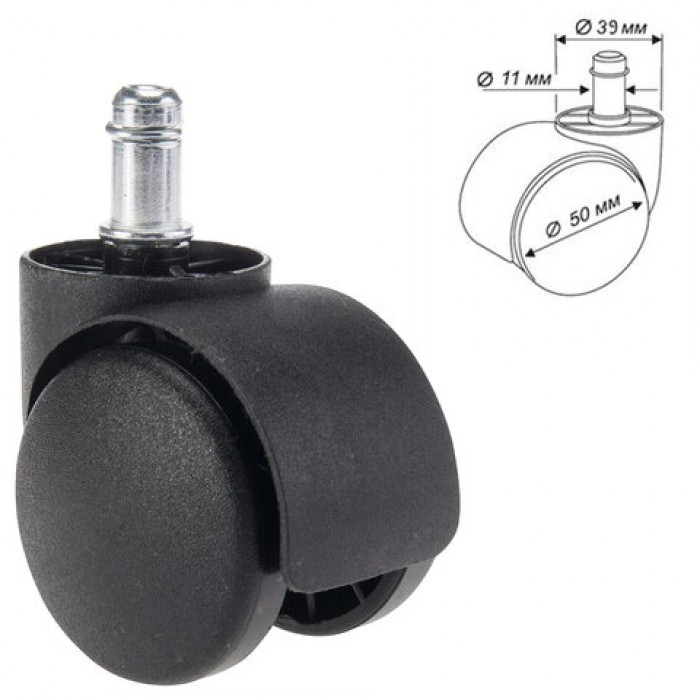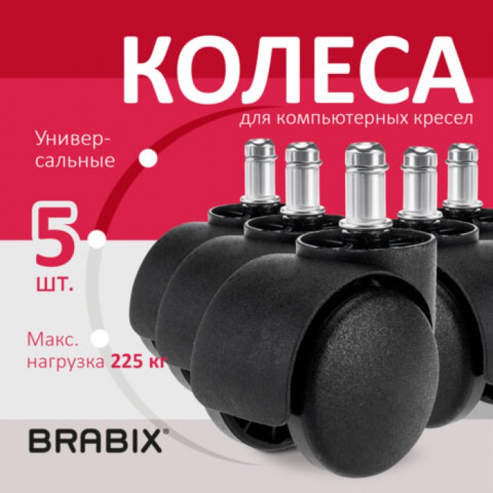 Колеса (ролики) BRABIX для кресла, пластиковые, КОМПЛЕКТ 5 шт., шток d11 мм, черные, в коробе, 532008