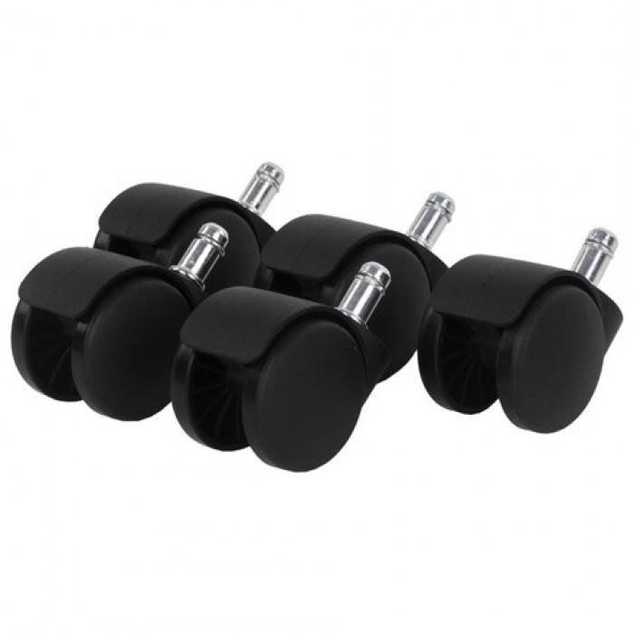 Комплект роликов для офисных кресел. Стандартный размер штока 11х21 мм совместим с подавляющим большинством моделей кресел. Максимальная нагрузка – 45 кг на 1 колесо. Рекомендованы для следующих типов напольных покрытий: плитка, линолеум, ковролин.