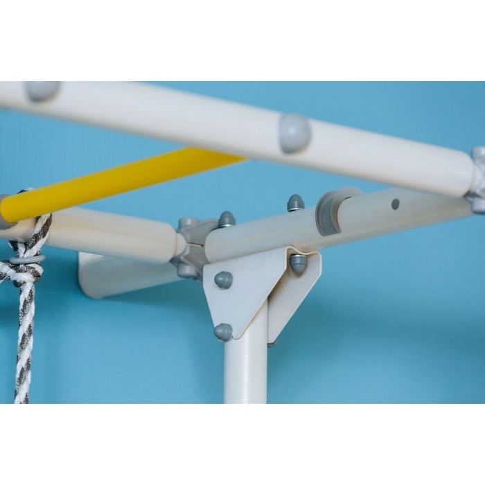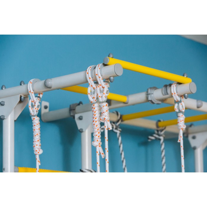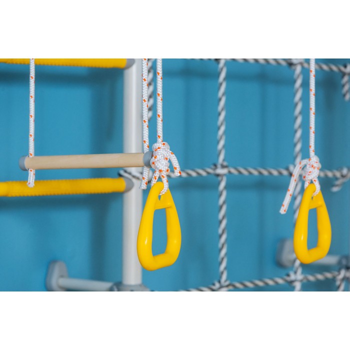 В этом комплексе предусмотрены необрезиненные перекладина и рукоход, что делает приключения на стенке еще более захватывающими! Конструкция прочная и выдерживает человека весом 100 кг (нагрузка при испытаниях комплекса — 200 кг).
