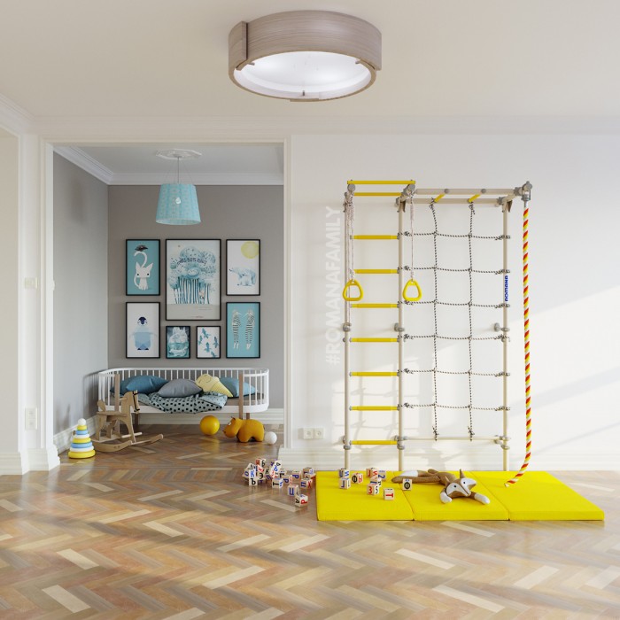 При кажущейся величине, комплекс ROMANA Karusel S7 спокойно устанавливается в большинстве квартир. Он занимает всего 1,2 метра в длину и разместится у любой свободной стены. Выбирайте из двух цветовых решений — новая гамма теплая, яркая, органично впишется в современный интерьер. Хороший выбор для ищущих что-то оригинальное для своих домочадцев. Скачайте для детей бесплатное приложение «ROMANA. Тренируемся вместе» и занимайтесь физкультурой в новом формате!