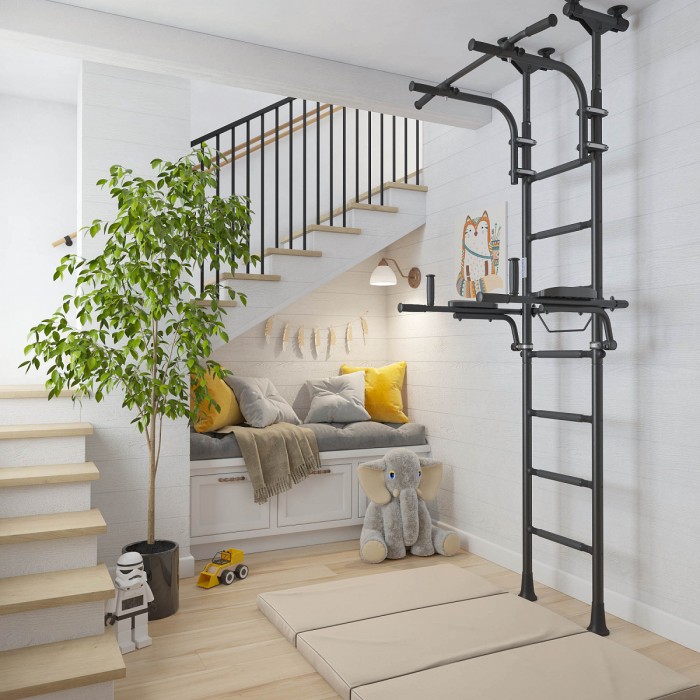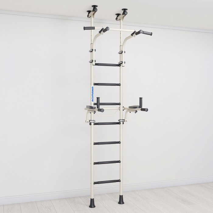 Спортивный комплекс ROMANA R10 - хороший выбор для занятий физкультурой всей семьей. Ввиду лаконичного дизайна, он также будет оптимальным решением как для офиса так и для комнаты современного подростка. Шведская стенка крепится враспор, между полом и потолком; подходит для помещений с гипсокартонными стенами. По желанию ее можно легко переместить в другое место комнаты.
