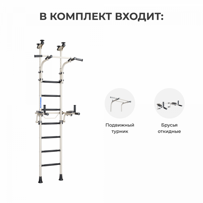 В комплекте идут откидные брусья, которые можно перевести в вертикальное положение после занятий, чтобы сэкономить пространство. Турник свободно перемещается на нужную высоту и крепится к гимнастической лестнице современными надежными хомутами. ROMANA R10 поставляется в двух расцветках. К данному спортивному комплексу можно докупить любое навесное оборудование из нашего ассортимента.