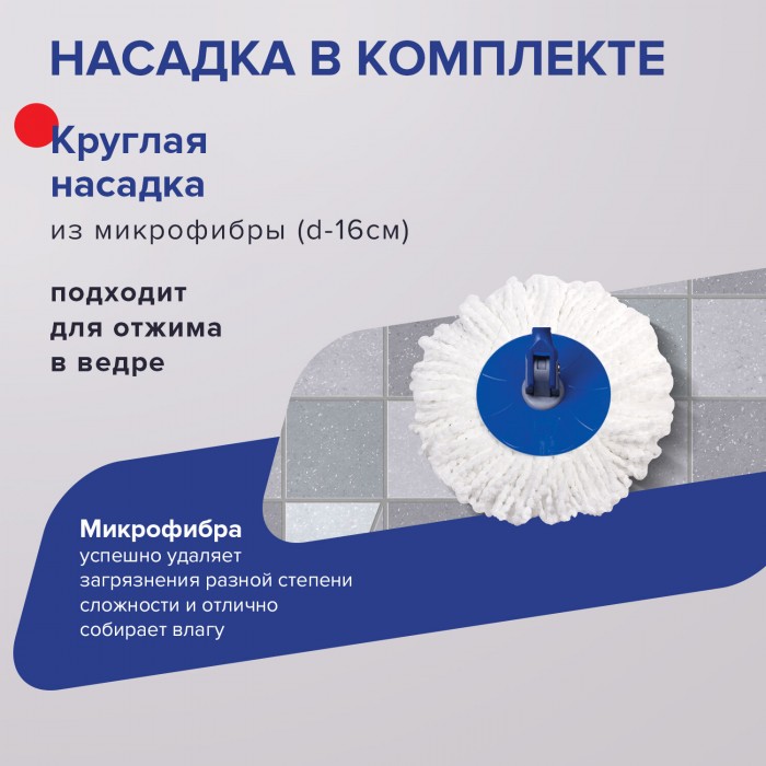 Комплект для уборки: швабра, ведро 14 л/5 л с отжимом центрифуга, 2 круглые насадки, LAIMA, 601460