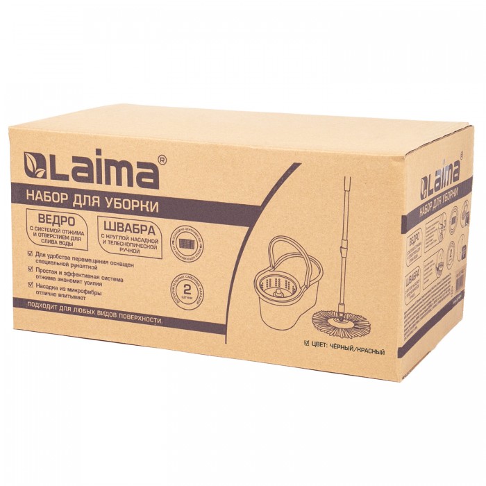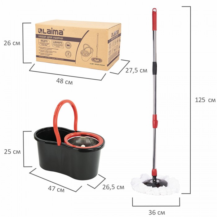Набор LAIMA предназначен для проведения влажной уборки небольших помещений. Швабра отлично собирает влагу и грязь, тем самым облегчая уход за домом или коммерческим помещением. Длина рукоятки 125 см. Отжим-центрифуга имеет надежный металлический корпус.