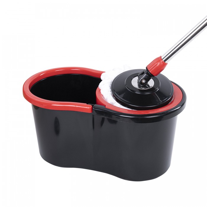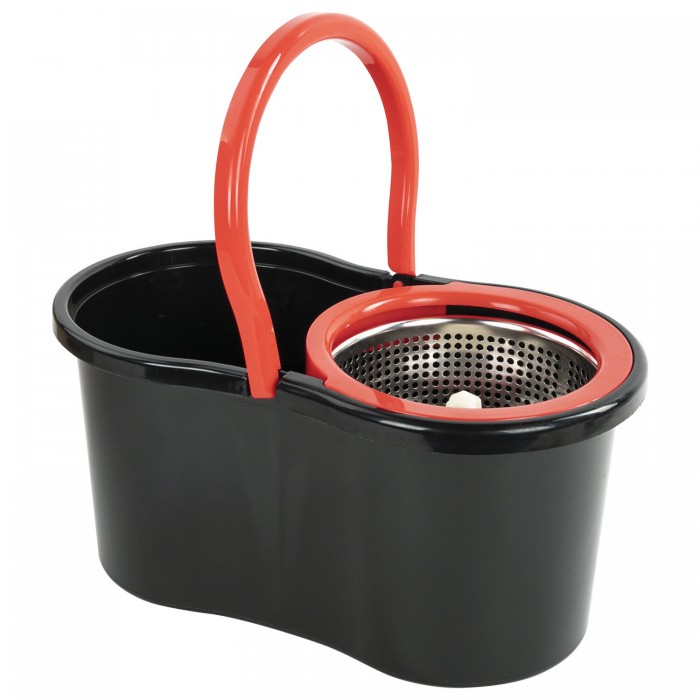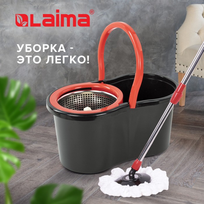 Комплект для уборки: швабра, ведро 7 л/5 л с отжимом центрифуга, 2 насадки, черный, LAIMA, 607487