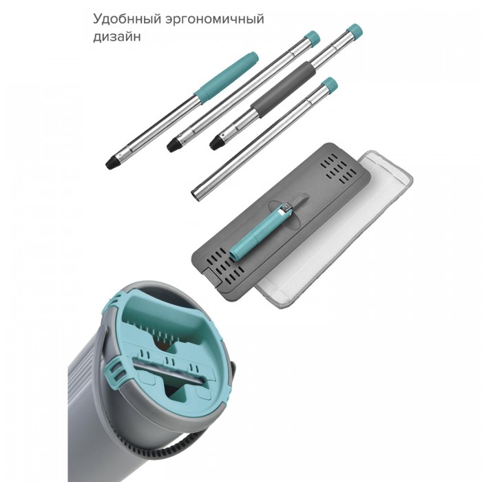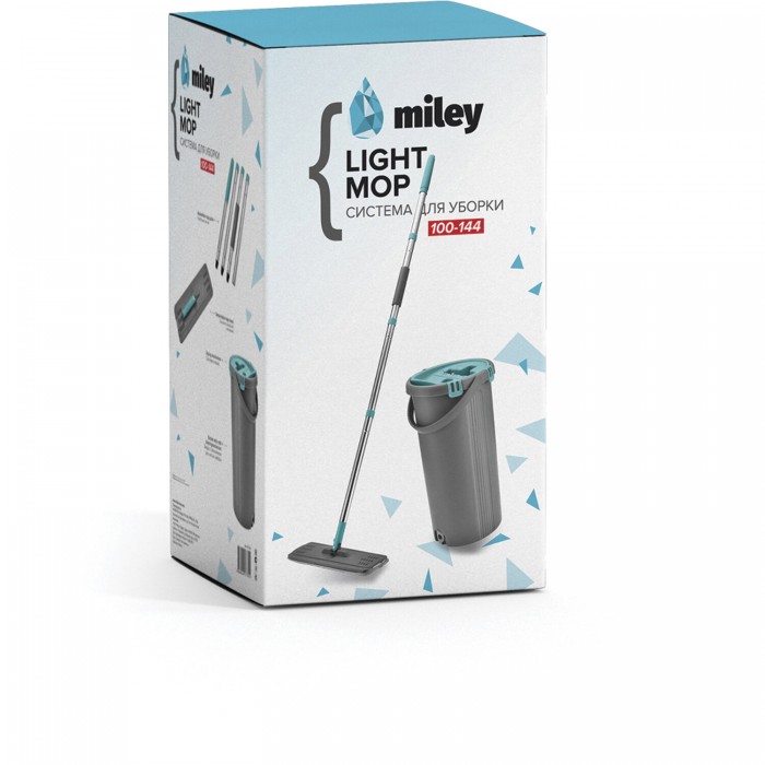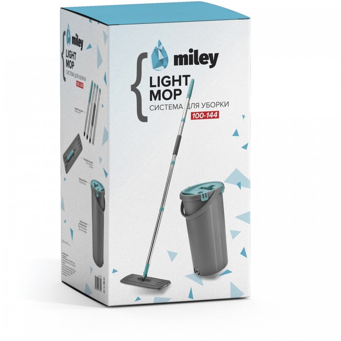 Комплект для уборки: швабра, ведро 8 л/7 л двухкамерное с отжимом, насадка, LIGHT MOP, MILEY, 901-618