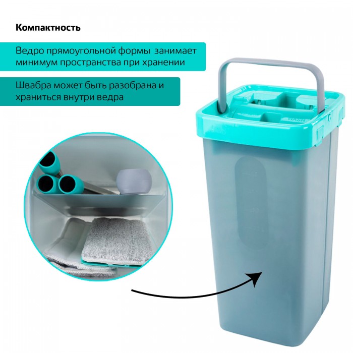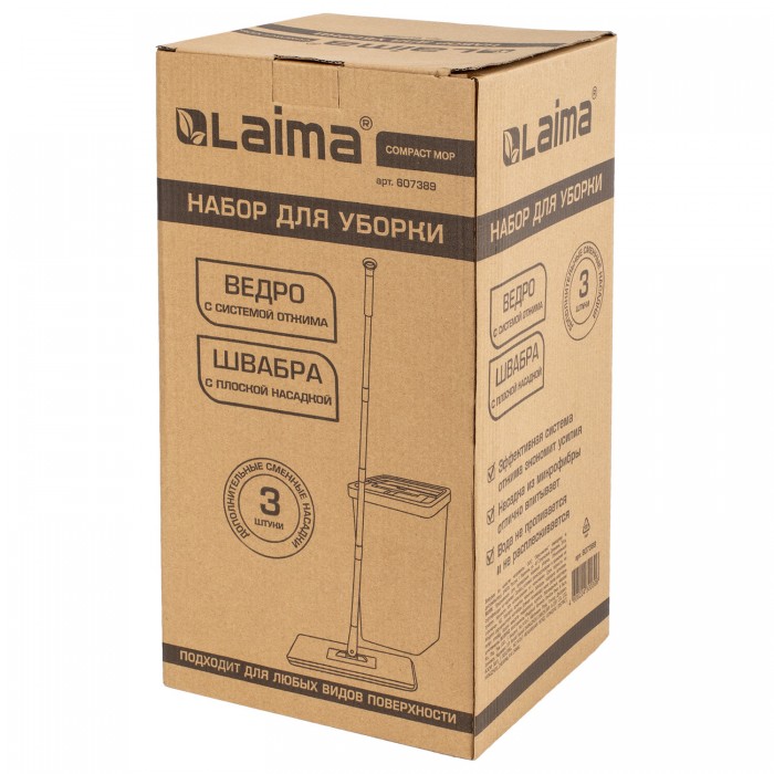 Удобный и компактный набор для уборки LAIMA идеален как для домашнего использования, так и для уборки небольшого офиса. В комплект входит: швабра + 3 насадки МОП (карманы с 2-х сторон), ведро с двумя отсеками (чистая/грязная вода) и туннельный отжим.