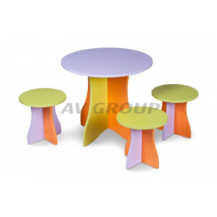 Комплект игровой "ДАЧНЫЙ", стол + 3 табурета стол 580*580*520 табурет 300*300*300 (3 шт.)
