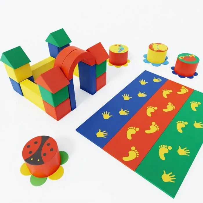 Мягкий комплекс для маленьких принцев и принцесс, предназначен для организации детского игрового досуга в детских садах и залах лечебной физкультуры. Элементы мягкого набора помогают в организации игровых занятий для детей. С помощью ярких модулей разных форм и цветов можно возводить уникальные сооружения и конструкции, а также организовывать развлекательный досуг для детей (утренники, театральные постановки, спортивные состязания и пр). В состав набора входит развивающий коврик «Путаница». Занятия на игровом объекте способствуют развитию памяти, внимательности и координации движений, а также укрепляют мышцы. Комплекс игровых модулей полностью безопасен и имеет все необходимые сертификаты, которые позволяют использовать набор в детских дошкольных учреждениях.