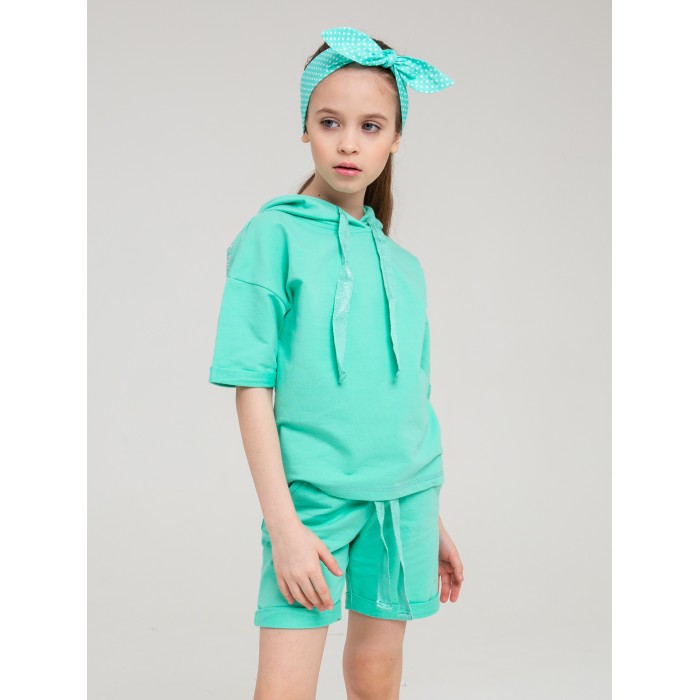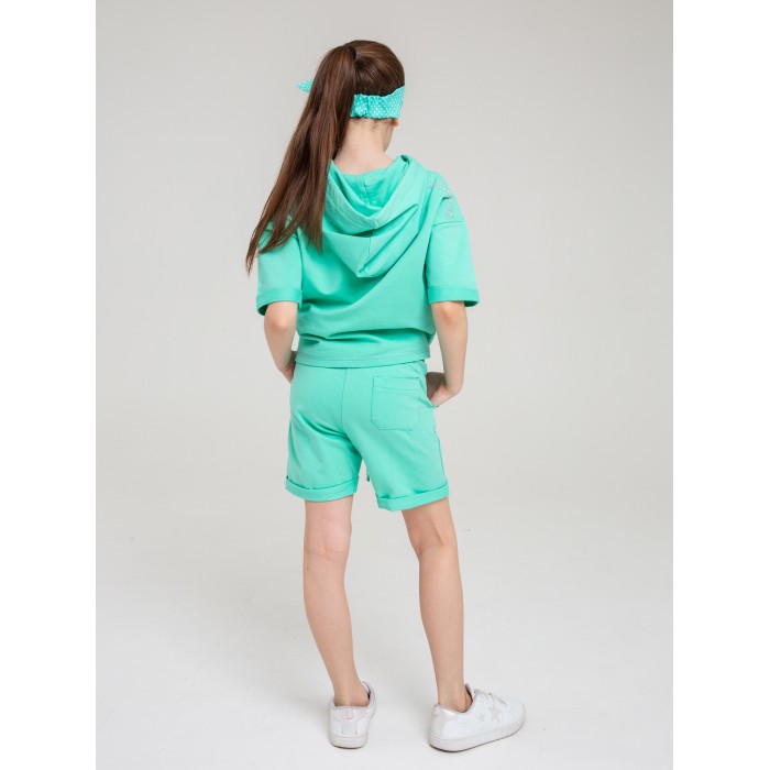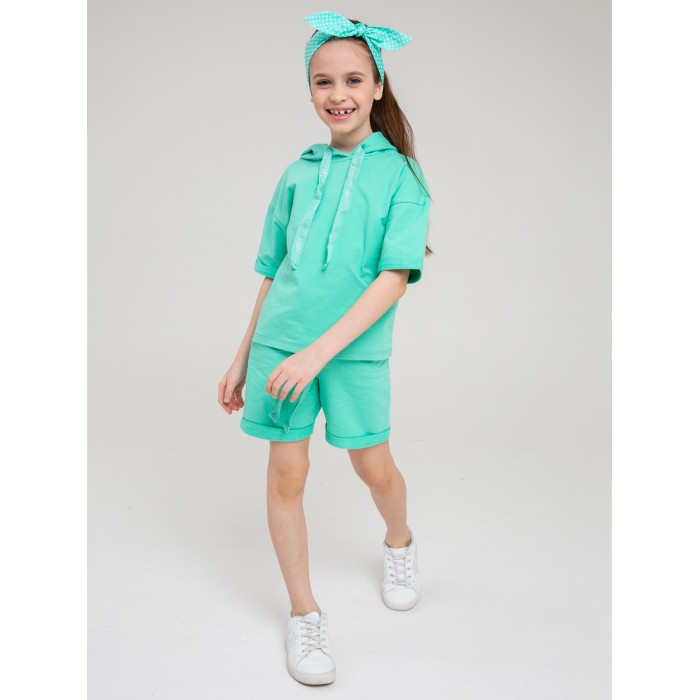 Комплект трикотажный на девочку: пуловер и шорты в мятной расцветке. Материал изделий - футер.