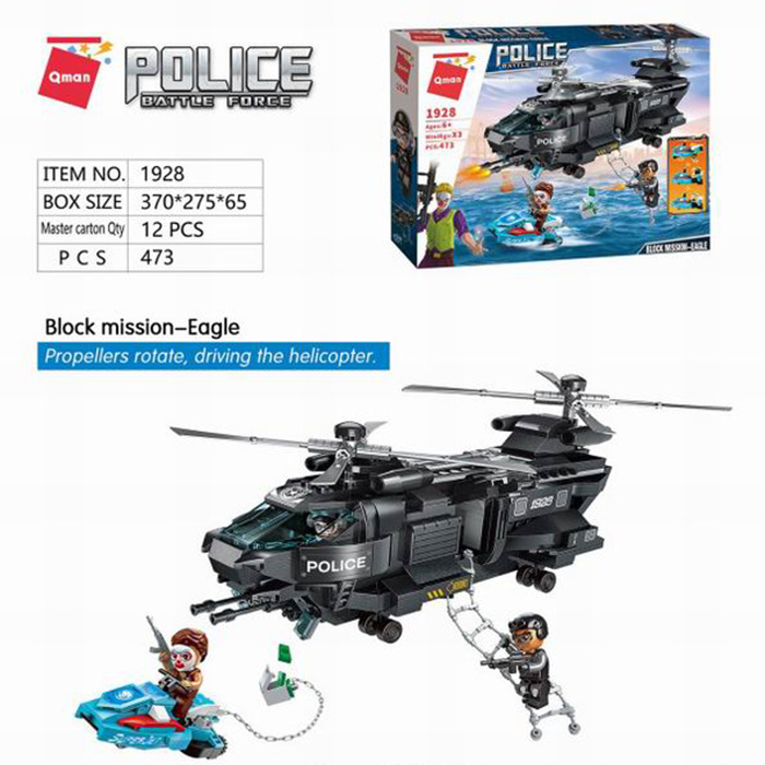 Конструктор 1928 QMAN Полицейский вертолет 473 дет. в кор.