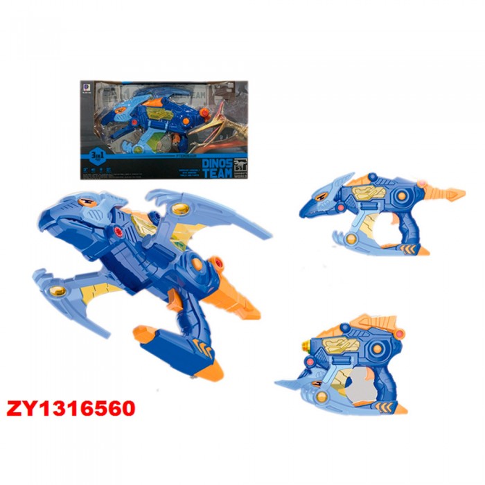 Размер упаковки: 43,5 х 10,5 х 25 см Размер изделия: 34 х 8 х 21 см Функционал: трансформер, конструктор, свет, звук Упаковка: картонная коробка с дисплеем Страна производитель: КНР Материал: пластик Комплектация: детали трансформера Возраст ребенка: от 3 лет Стильный трансформер понравится малышам и станет замечательным подарком. Особенности: - 3-в-1: динозавр и две модели оружия; - простая сборка; - световые и звуковые эффекты; - работает от 3-х батареек АА (не в комплекте); - яркие цвета; - качественный пластик. Все модели функциональны - с ними можно придумать интересные игры. Игры с трансформерами развивают: - мелкую моторику; - координацию; - воображение; - мышление; - усидчивость; - логику; - зрительное восприятие.