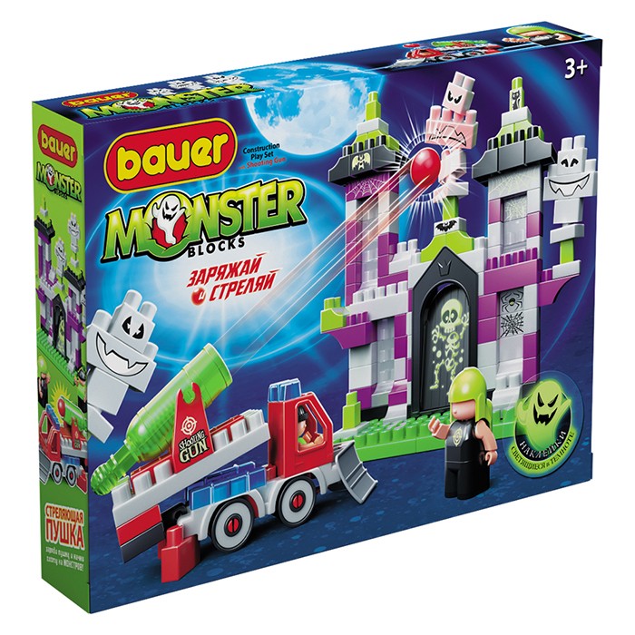 Конструктор Bauer 823 Monster blocks Набор средний дом с привидениями, машиной-пушкой и 2-мя охотниками