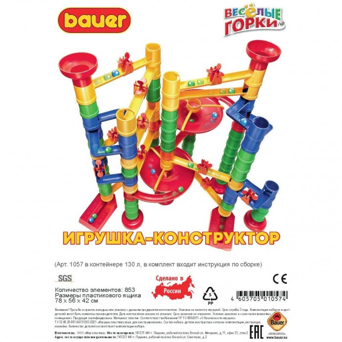 Конструктор Bauer "Веселые горки" (в контейнере 130 л, 15 инструкций, тематические наклейки)