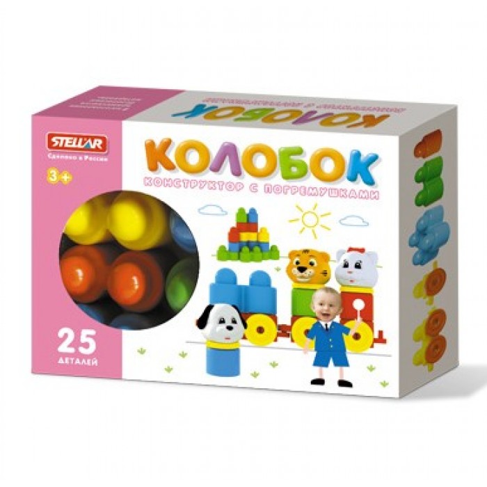 Комплектация: детали конструктора - 25 шт. (округлые детали с двумя секциями, колеса, фигурки животных), инструкция Материал: пластик Размер упаковки: 34*24,5*6,5 см Размер мордочек животных: 6*6*5 см. Диаметр колес: 4,5 см Возраст: 1+ Функционал: конструирование Упаковка: картонная коробка Страна обладатель бренда: Россия Конструктор "Колобок" 03020 от бренда "Stellar" - это интересный набор для конструирования из крупных пластиковых блоков и прекрасный подарок для маленьких любителей этого занятия. В процессе игры ребенок сможет проявить фантазию и собрать поделки с погремушками из крупных и ярких деталей упрощенной формы, также детали можно сортировать по цвету или собирать в определенной последовательности. Большие блоки имеют цилиндрическую форму с круглым наконечником вверху и выполнены в 4 ярких цветах (зеленый, синий, желтый, красный). Все наборы совместимы друг с другом и аналогичными наборами других производителей. Благодаря этому набору, ребенок сможет придумать множество сюжетно-ролевых