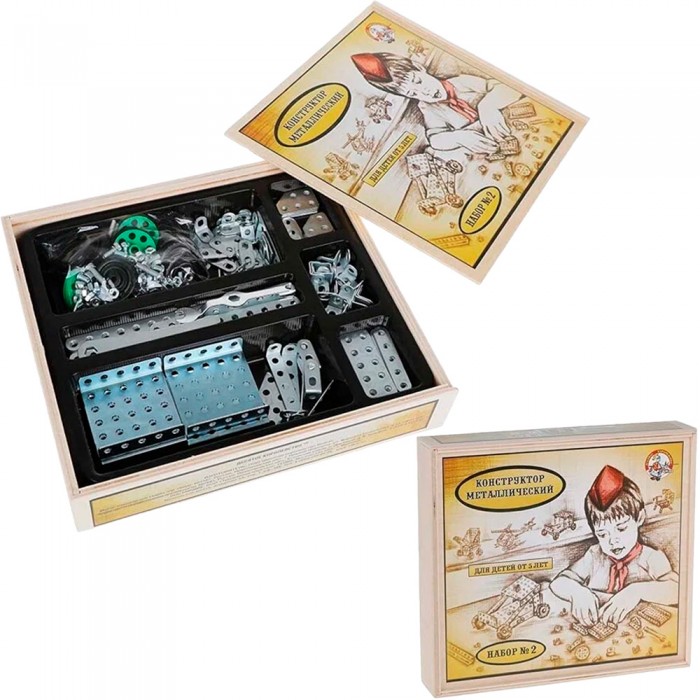 Комплектация: детали конструктора, инструкция, инструменты, шурупы, гайки Материал: металл Размер упаковки: 23*21*4,5 см Возраст: 5+ Функционал: конструирование Упаковка: деревянный ящик Страна обладатель бренда: Россия Конструктор №2 от торговой марки "Десятое королевство" представляет собой классический металлический конструктор. В комплекте есть подробная иллюстрированная инструкция с пошаговыми рекомендациями. Начинать работу над конструктором лучше всего с примеров, описанных в ней. Представленные модели являются только примером, так как конструктор раскрывает перед ребенком неограниченные возможности моделирования и создания своих собственных моделей. Он отлично развивает конструкторское, инженерное мышление. Металлические детали очень удобны в применении. Металлический конструктор сложнее пластикового в техническом плане, тем самым, он имеет больший развивающий потенциал. Конструирование развивает логическое и образное мышление, наблюдательность и самостоятельность, а также моторику рук и ловкос