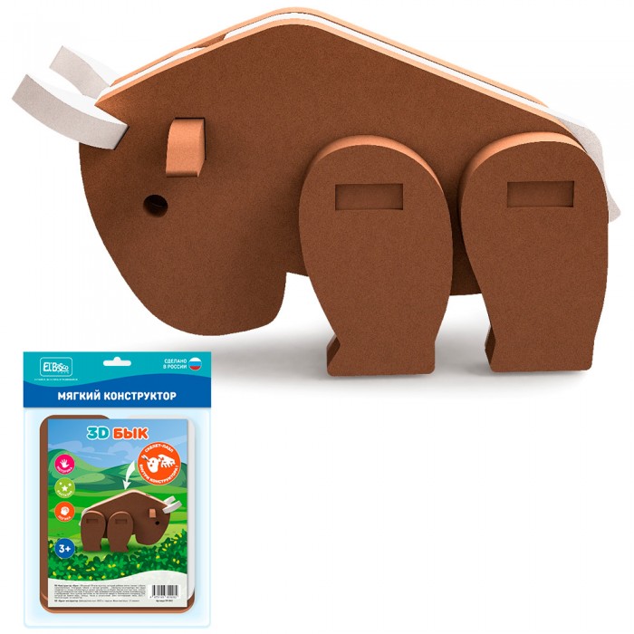 Размер упаковки: 20 х 31 х 2 см Вид упаковки: блистер Функционал: товары для развития ребенка Страна производитель: Россия Материал: EVA Комплектация: 12 элементов Вес: 60 гр. Возраст ребенка: 3+ Мягкий 3D-конструктор «Бык» понравится маленьким любознайкам. Элементы конструктора без труда соединяются между собой и хорошо держат форму после сборки. Внутри конструктора - скелет, который собирается как пазл. В процессе игры развивается: - мышление; - тактильное восприятие; - логика; - внимательность; - усидчивость; - воображение.