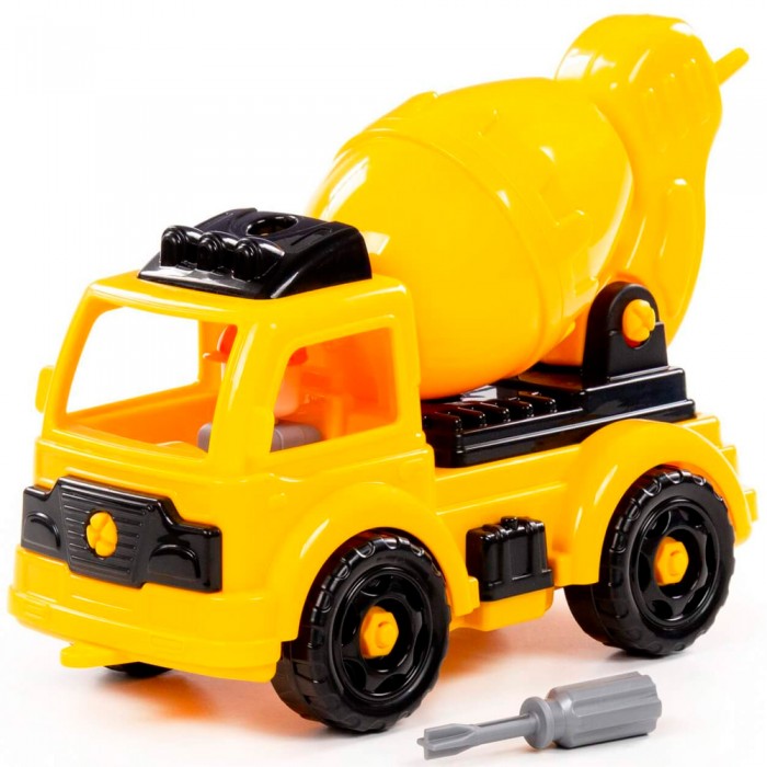 Конструктор-транспорт Автомобиль-бетоновоз 27 эл. жёлто-чёрный в кор. 43242