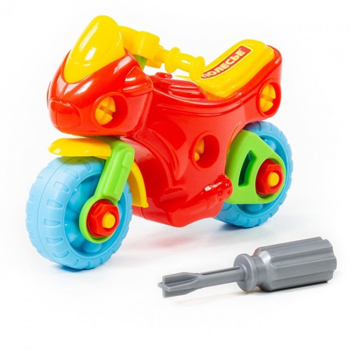 Комплектация: детали для сборки - 25 шт., отвертка, шурупы, гайки Материал: пластик Размер упаковки: 19,5*6,5*21 см Возраст: 3+ Функционал: сборка коструктора Упаковка: пакет с хедером Страна обладатель бренда: Беларусь Конструктор представляет собой сборную модель мотоцикла. Ее необходимо собирать из деталей при помощи шурупов и гаек, а помогут в этом инструменты. В процессе этой увлекательной игры малыш научится отвинчивать и завинчивать гайки, будет тренировать внимание, мелкую моторику и мышление. Игрушка красочно оформлена и изготовлена из качественного пластика с применением безопасных красителей.