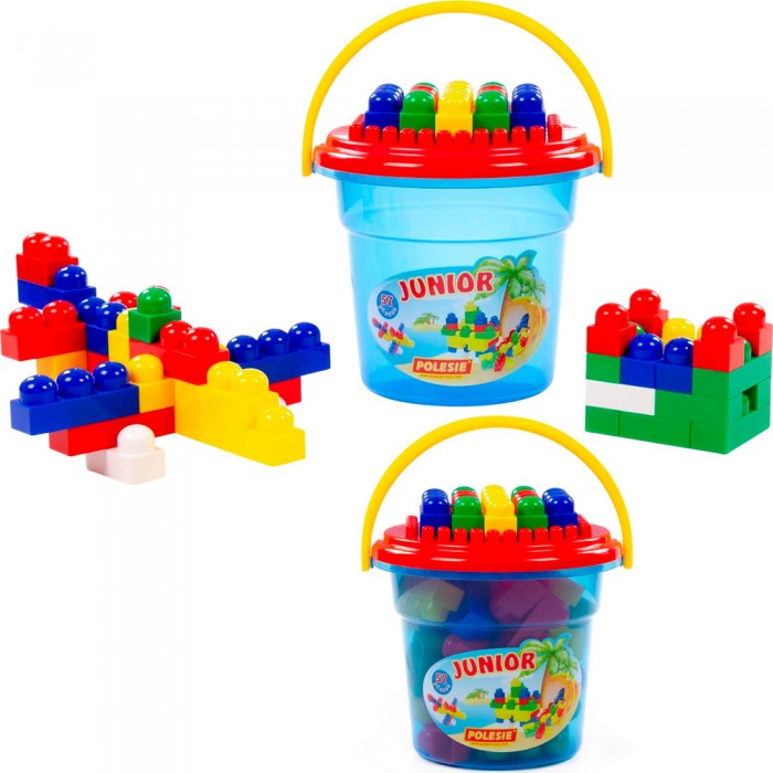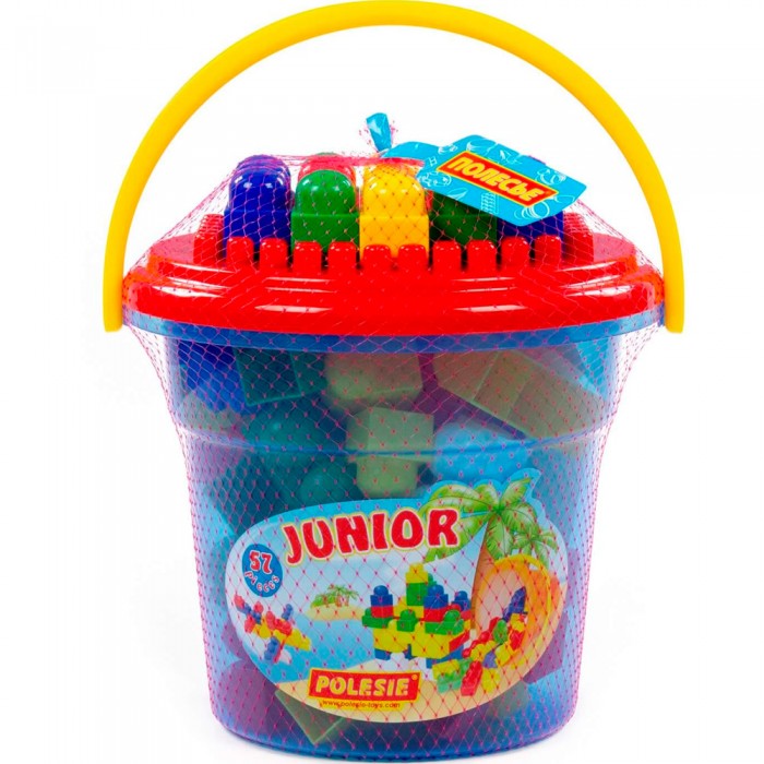 Конструктор Юниор 57дет. в ведре синем Макси с крышкой 24378 П-Е/6/