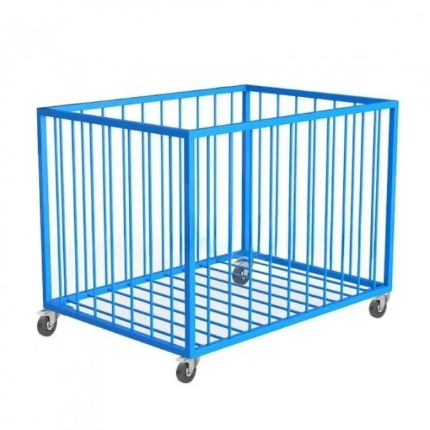 Из метал.трубы-квадрат 20х20 и прут 6 мм Покрытие: полимерно-порошковое Цвета: синий,желтый,зеленый,красный, оранжевый,белый,бежевый. Конструкция разборная. На поворотных усиленных резиновых колёсных опорах, 2 из них со стопором (тормозом). Размеры: 1000х450х540мм Вес 23 кг. Объём 0,05 м/куб. колесо РЕЗИНА усиленное