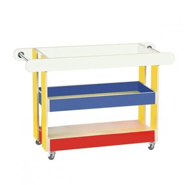 Из ЛДСП Бук или Цветного Кромка,Кант ПВХ. 2 металлические хром-трубы диам.25 мм. На поворотных колёсных опорах пластиковых или усиленных резиновых. Размеры: 1200х500х800мм Вес 33 кг. Объём 0,06 м/куб. Цвет БУК , колесо ПЛАСТИК