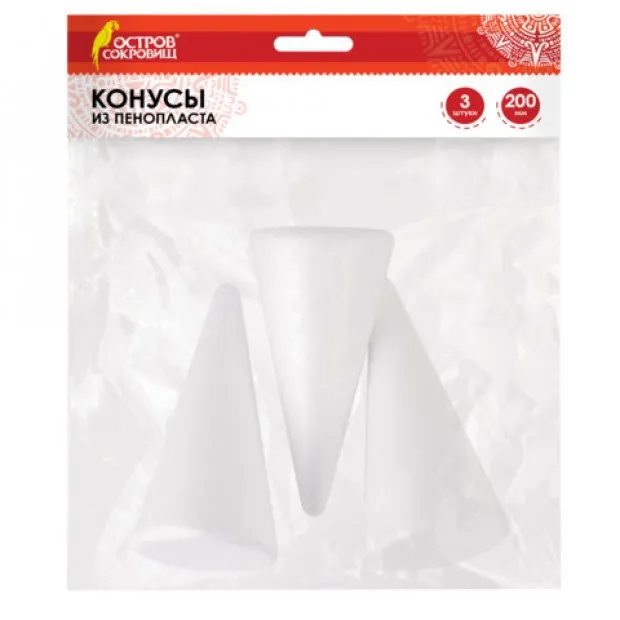 Конусы из пенопласта, 200 мм, 3 шт., ОСТРОВ СОКРОВИЩ, 665371