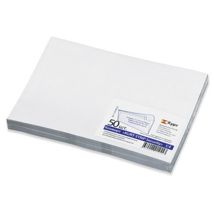 Конверты С4 (229х324 мм) SECURITY, отрывная лента, 90 г/м2, КОМПЛЕКТ 50 шт., внутренняя запечатка, 120180.50