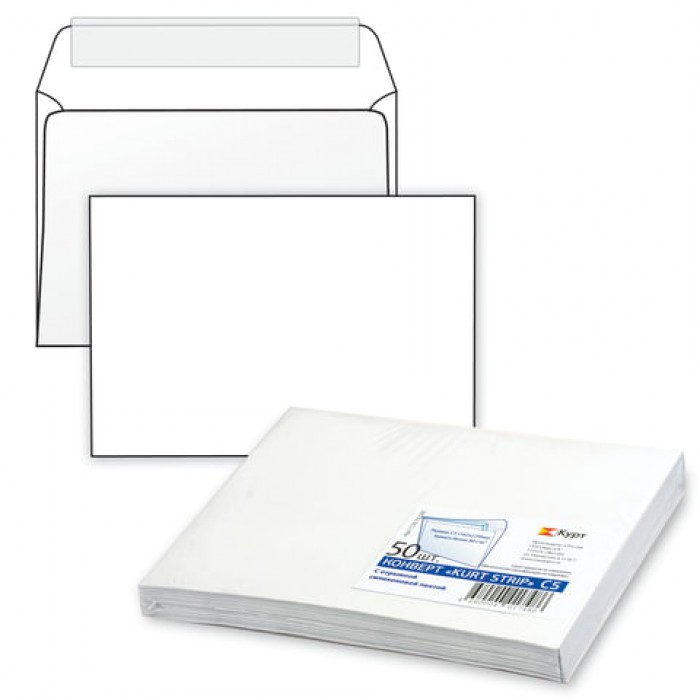 Конверты С5 (162х229 мм), отрывная лента, 80 г/м2, КОМПЛЕКТ 50 шт., внутренняя запечатка, С50.10.50С