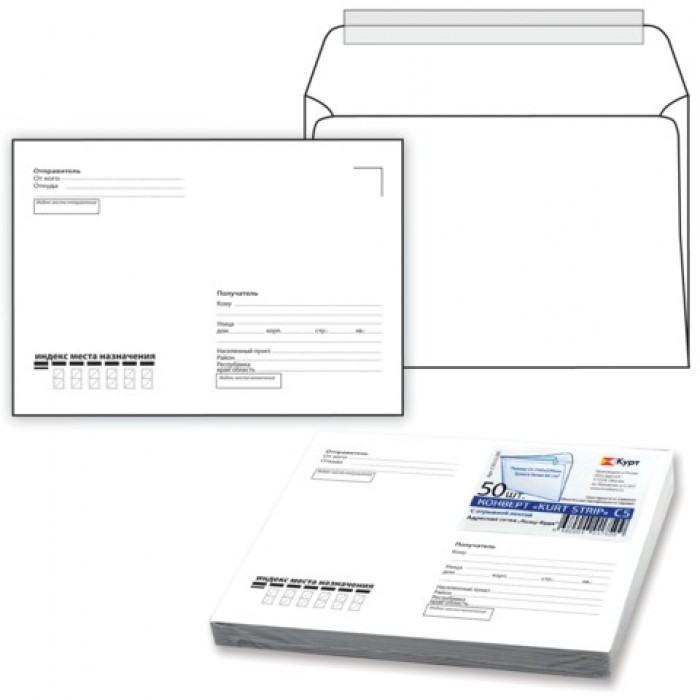 Конверт почтовый формата С5 предназначен для рассылки писем, открыток, документов формата А5 или А4 в сложенном виде.
