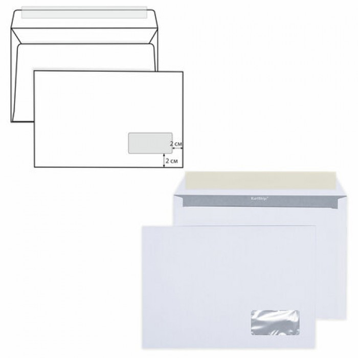 Конверт почтовый формата С5 предназначен для рассылки писем, открыток, документов формата А5 или А4 в сложенном виде. Окно имеет размер 45 мм х 90 мм.