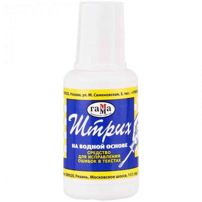 Корректирующая жидкость Гамма "Штрих", 20мл (27г), с кисточкой