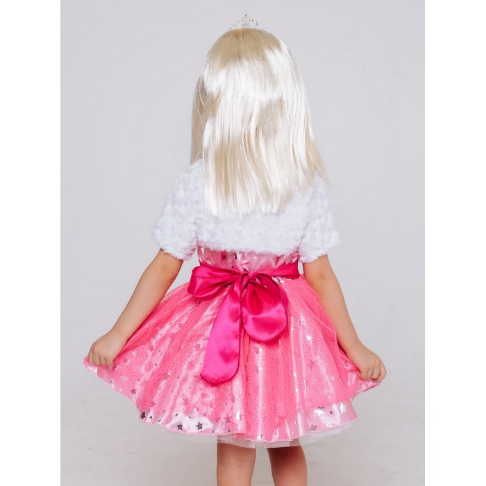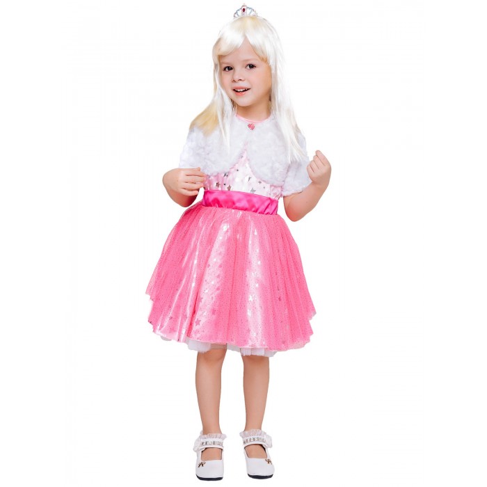 Костюм Барби – куклы-совершенства, которая известна вот уже многим поколениям девочек. А вы знали, что кукле Барби уже 60 лет? Впрочем, выглядит она все также прекрасно! Карнавальный образ куклы Барби – предел мечтаний многих маленьких красавиц. Воплотите мечты в жизнь вместе с новым нарядом из коллекции «Сказочный маскарад» от бренда Пуговка. Комплект костюма состоит из розового платья с болеро, парика и тиары.