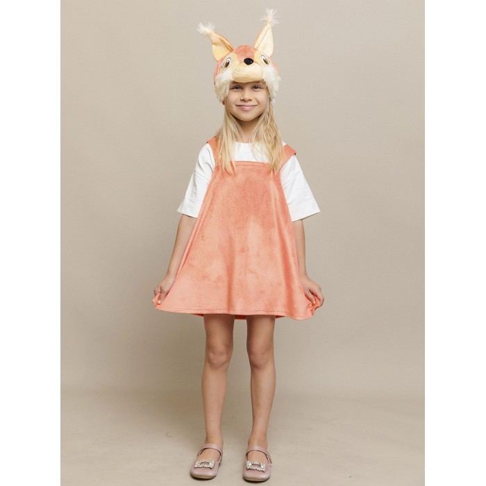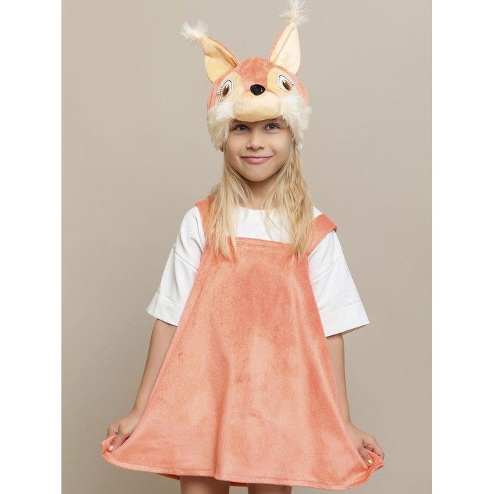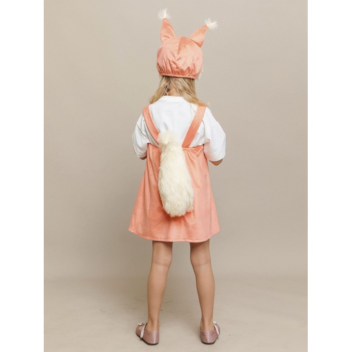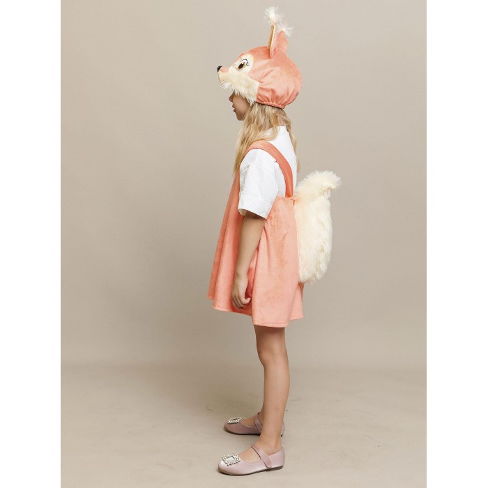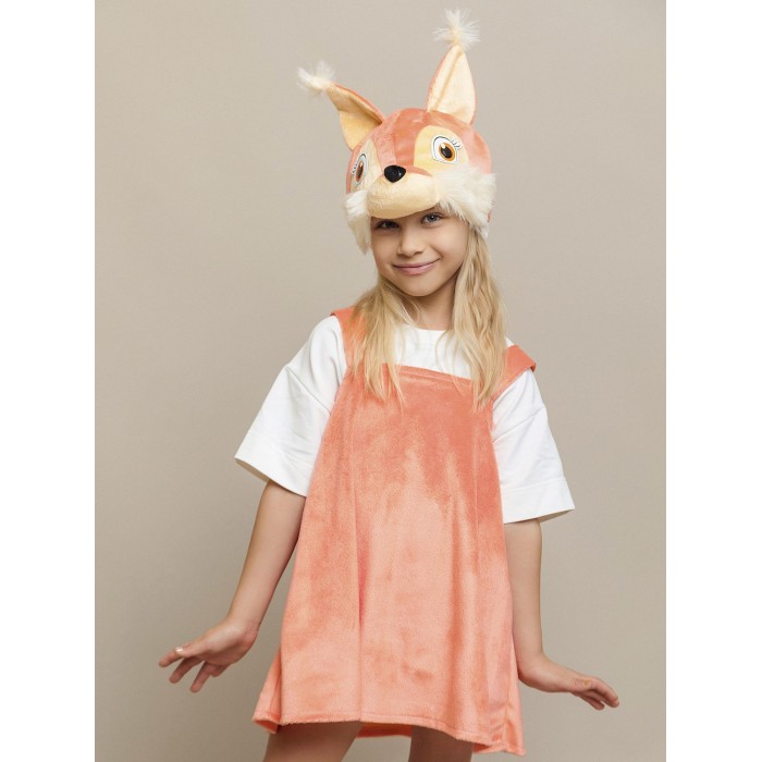 Карнавальный костюм Белочка Лапушка для девочки. В комплект входит сарафан и маска. Костюм идеально подойдет для утренника или спектакля в школе или садике. Сарафан на коротких, широких лямках с застежкой на пуговицы сзади и маска-шапку с пришитыми ушками и объемной мордочкой белки, которая сделает образ еще более милым и привлекательным.