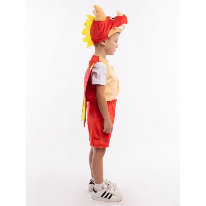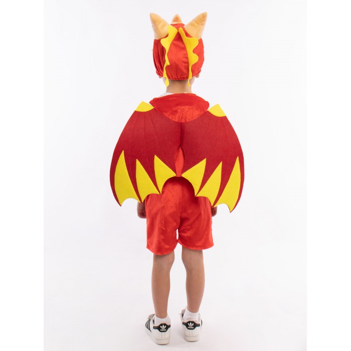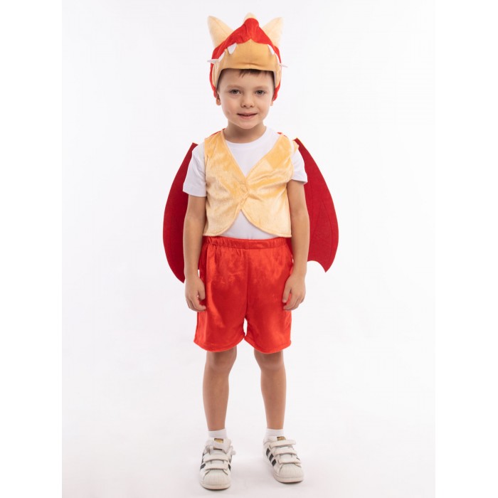 Карнавальный костюм Дракоша детский: жилет на велькро, шорты на резинке, крылья фетровые на резинке. Новый год, день Рождения, Хэллоуин - костюм Дракоши подойдёт для любого праздника. Костюм выполнен в желто-красных тонах, подойдет как для мальчика, так и для девочки.