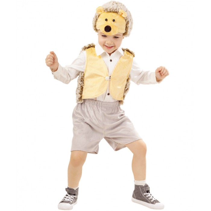 В карнавальном наряде Ежик Степка мальчик сможет отправиться на новогодний утренник или елку, а также принять участие в спектакле. Костюм рассчитан на возраст 4-6 лет. Выполнен в серо-желтом цвете. В комплект входит жилетка, шорты и шапка.