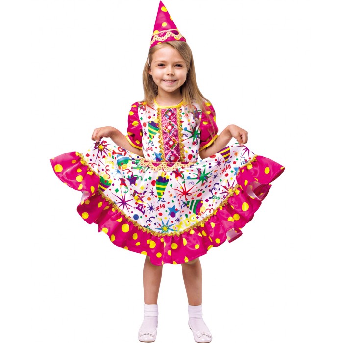 Неповторимый наряд Хлопушка создан для самых активных и зажигательных девчонок. Устроить праздник друзьям и близким легко вместе с карнавальным костюмом Хлопушка от бренда Пуговка. Образ представляет собой яркое платье и колпак на голову.