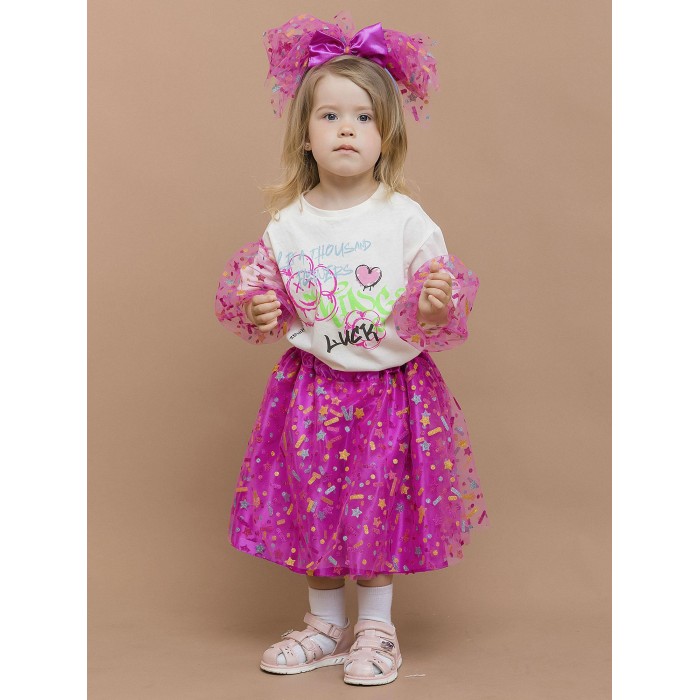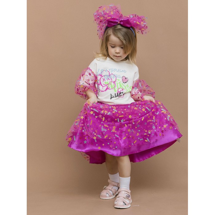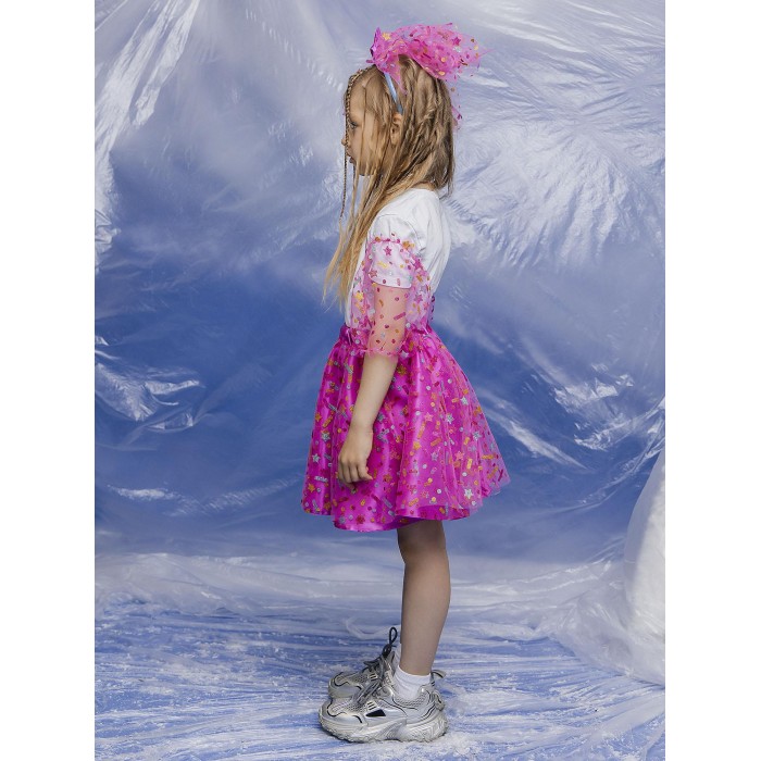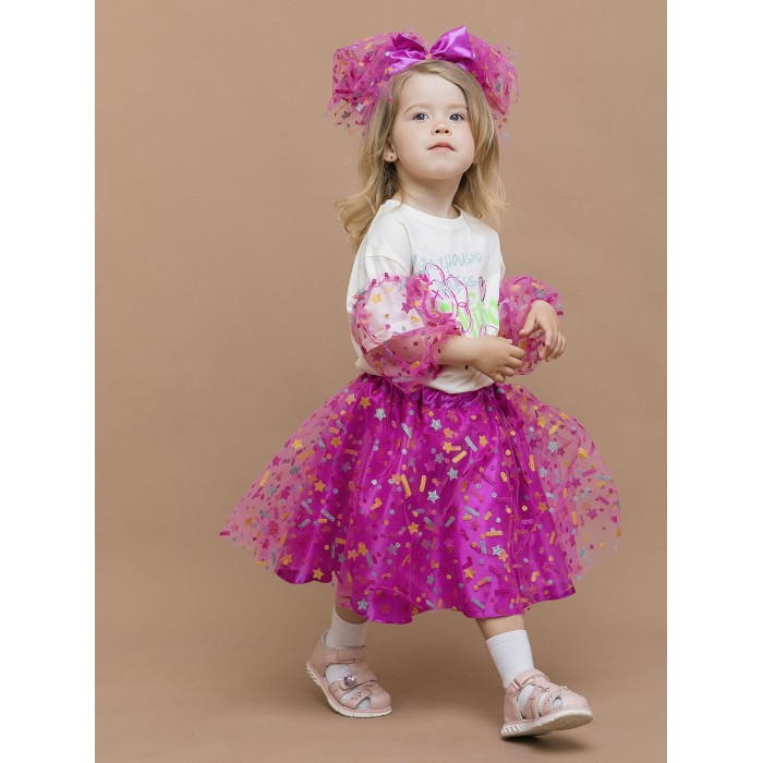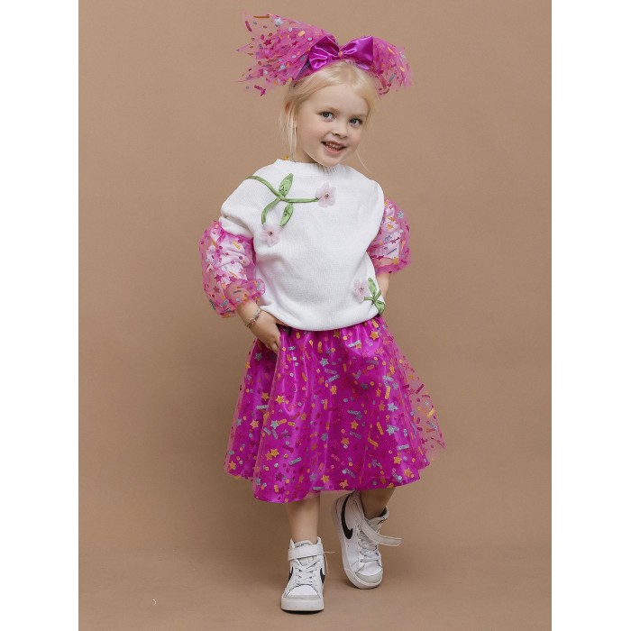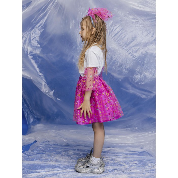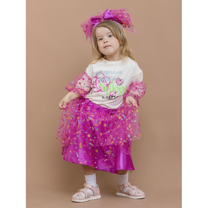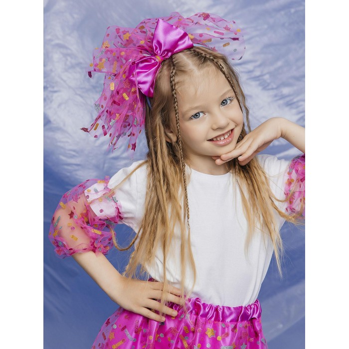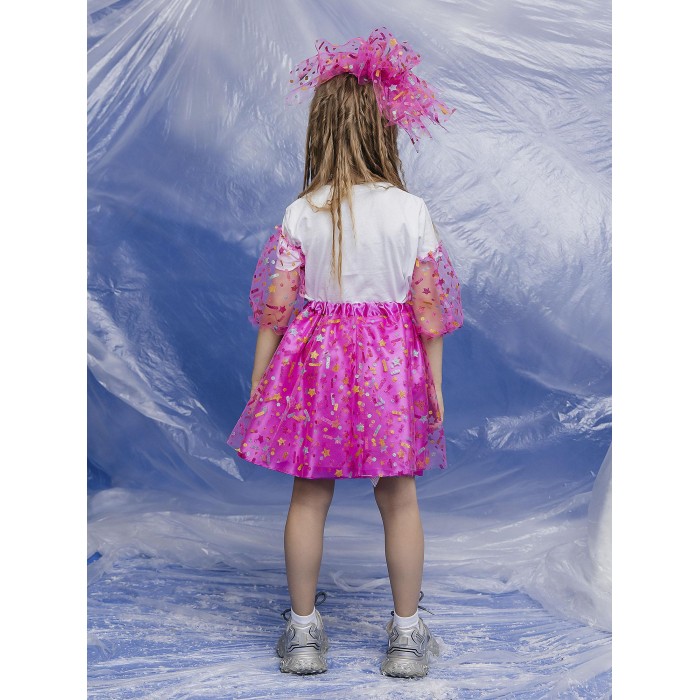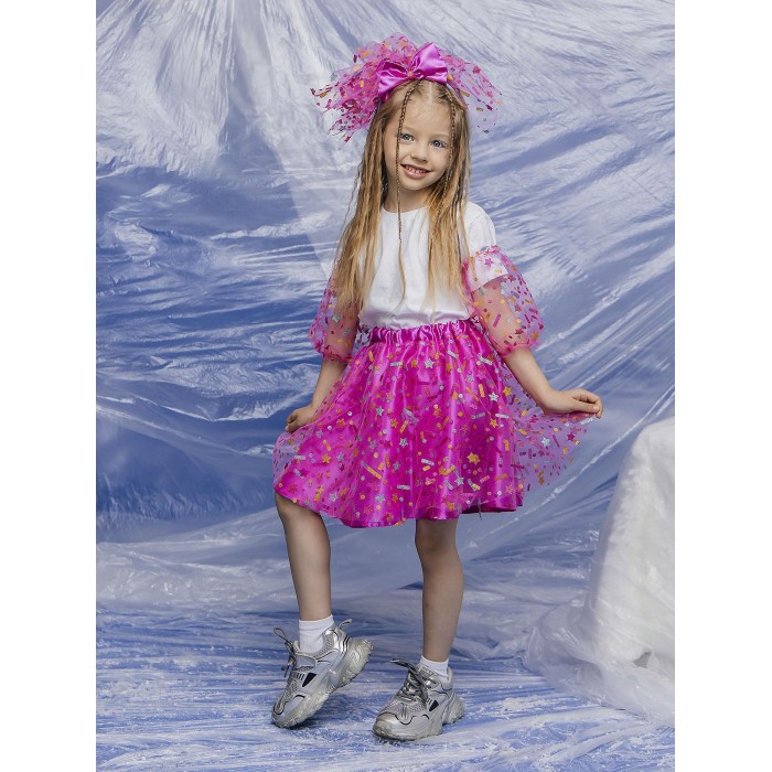 Карнавальный костюм Хлопушка – взрыв ярких эмоций и праздничного настроения. В комплекте: пышная юбка, съемные рукава на резинках, яркий ободок с бантом. Съемные элементы позволяют дополнять образ по настроению. Приятные к телу материалы позволяют свободно двигаться и танцевать.