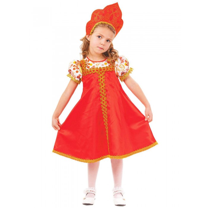 Девочка в таком костюме сможет почувствовать себя настоящей царевной, если она выступает на утреннике, играет в спектакле или просто идет на костюмированный праздник. В комплект костюма Красна-Девица от бренда Пуговка входят платье и кокошник ярко-красного цвета.