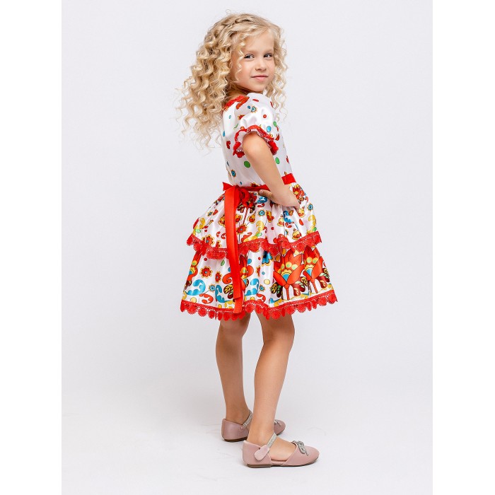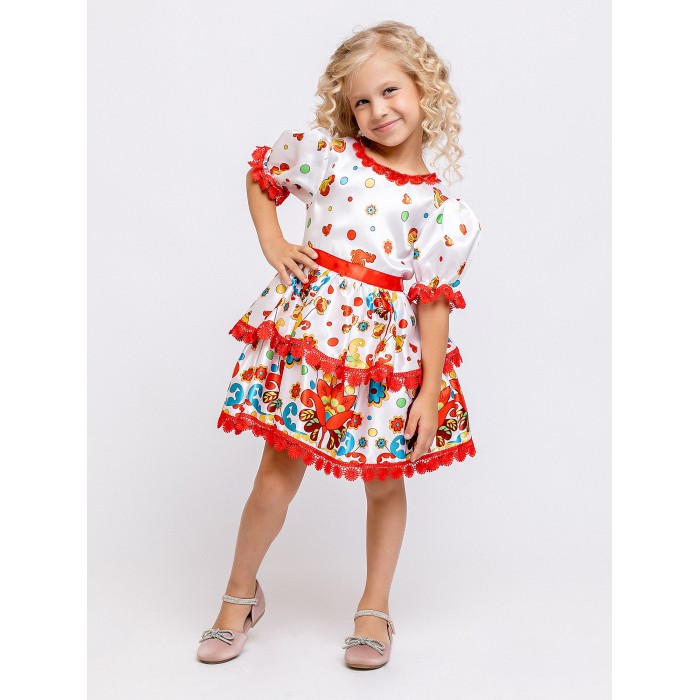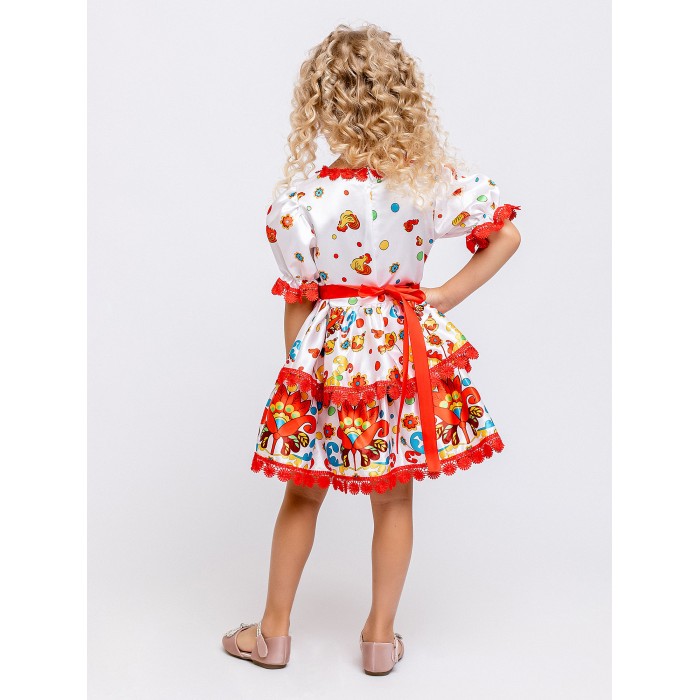 Карнавальный костюм Лето Красное для девочки 3-6 лет. Платье с коротким рукавом и народным узором. Яркий детский карнавальный костюм Лета для девочек можно купить в интернет-магазине batik. Он подойдет для детского сада или школы.